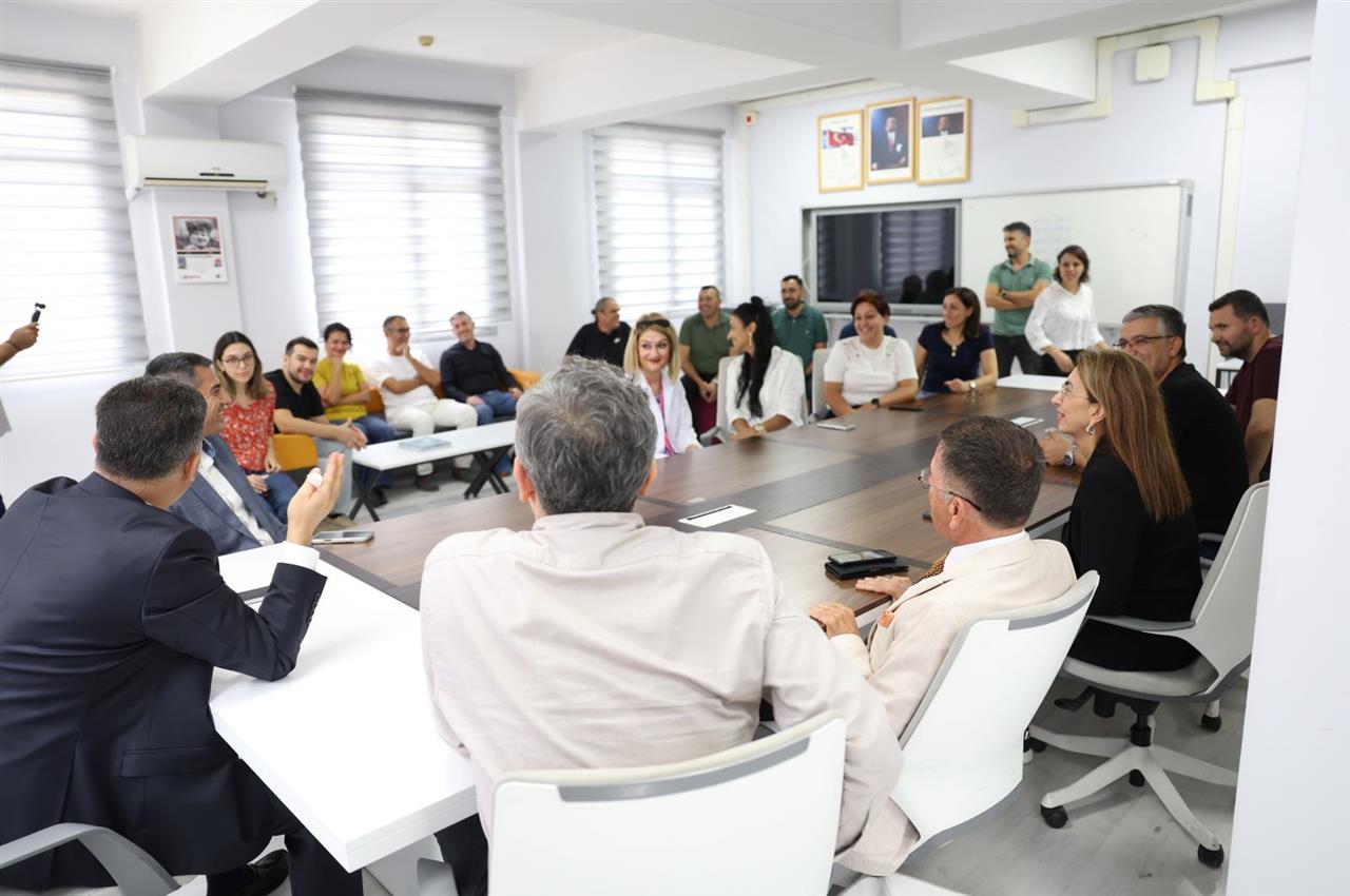 Öğretmenler odasında öğretmenlerle sohbet eden Başkan V. Şener, öğretmenlerin okul ile ilgili taleplerini dinledi, taleplerin yerine getirilmesi için ilgili birim müdürlerine talimat verdi.