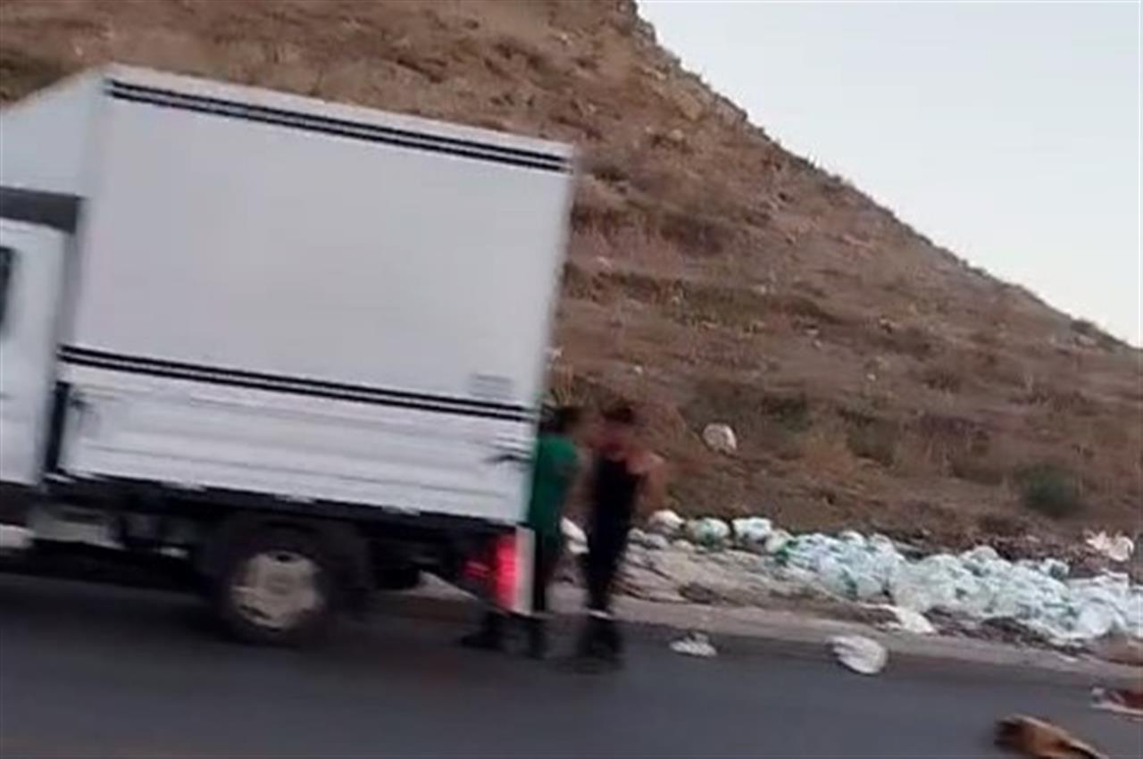 Yolun kenarına yoğurt dökenler cep telefonu kamerasına yakalandı