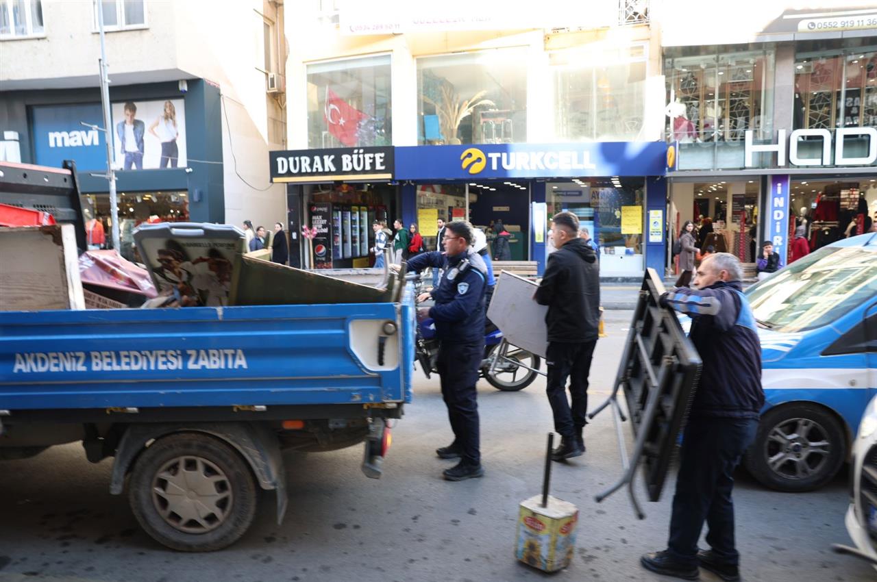Akdeniz Belediyesi Zabıta Müdürlüğü ekipleri, Mersin Büyükşehir Belediyesi Zabıta ekiplerinin desteğiyle gerçekleştirdiği denetimlerde; kaldırım ve yol işgallerini ortadan kaldırarak kent düzenini sağlamak ve vatandaşların güvenli geçişini temin etmeyi hedefledi. Denetimler kapsamında kurallara uymadığı tespit edilen, kaldırım ve yol işgalinde bulunan 5 işletmeye toplam 8.700 lira idari para cezası uygulandı.