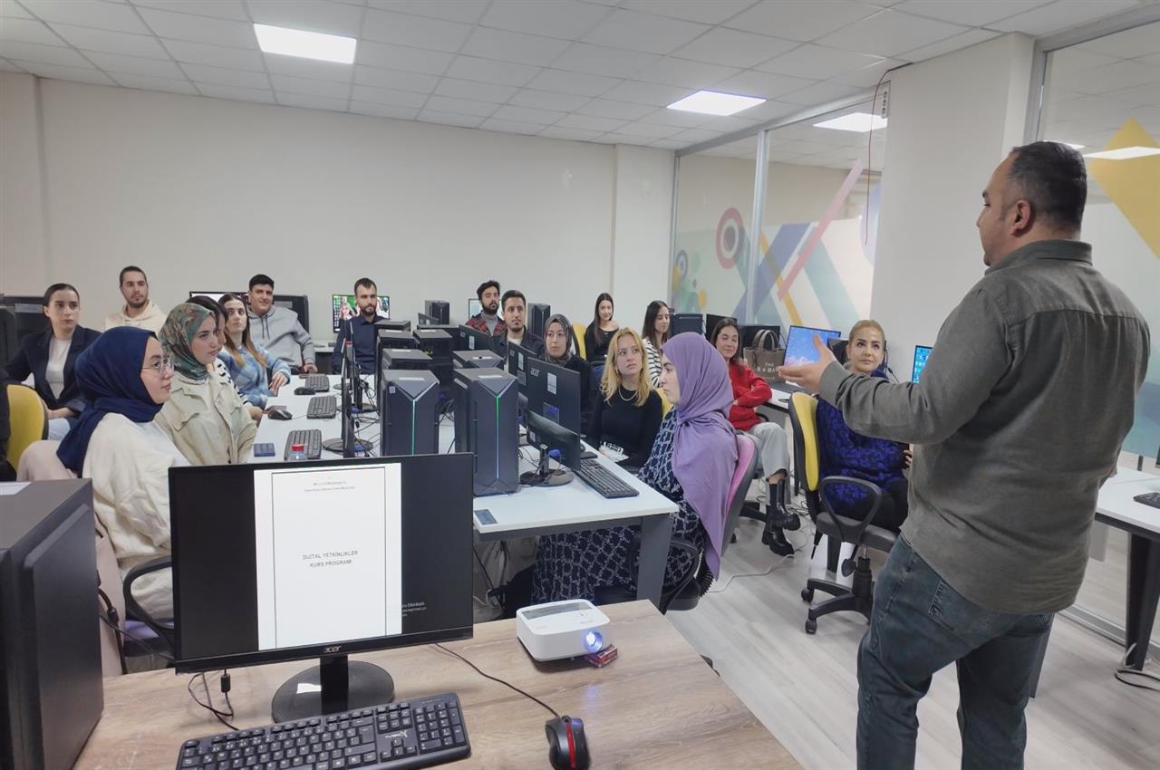 Projenin ilk uygulaması olan “Dijital Pazarlama ve Sosyal Medya Danışmanlığı” kursu ilk dersine başladı. Yoğun ilgi gösterilen kursa toplam 216 başvuru alındı. Yapılan ön değerlendirme sonucunda 20 kursiyer seçildi. Seçim sürecinde adayların motivasyonu, temel yetkinlikleri ve istihdama uygunluk kriterleri dikkate alındı. Eğitim sürecinin tamamlanmasının ardından kursiyerlerin özel sektörle buluşturulması ve istihdama kazandırılması hedefleniyor.