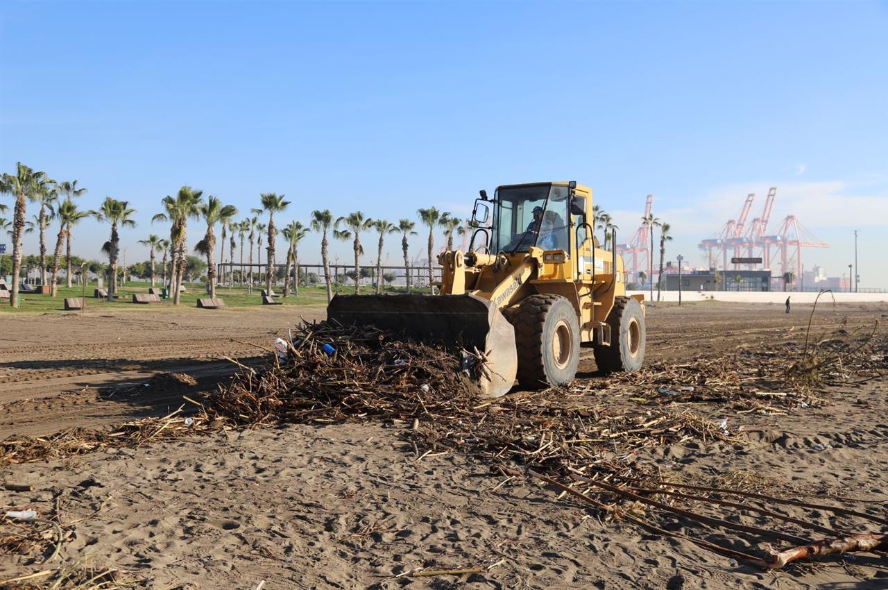 Sel sularıyla birlikte sahil şeridine sürüklenen odun parçaları, balçık ve çeşitli atıklar, Akdeniz Belediyesi Park ve Bahçeler Müdürlüğü ile Fen İşleri Müdürlüğü ekipleri tarafından 12 kamyon, 3 traktör, 1 kepçe ve 1 kazıcı-yükleyici desteğiyle temizleniyor. Sabahın erken saatlerinde sahil bölgesine intikal eden ekipler, iş makineleri yardımıyla biriken atıkları toplayarak belirlenen alanlarda bir araya getiriyor. Toplanan atıklar daha sonra kamyonlarla bertaraf merkezine taşınıyor.