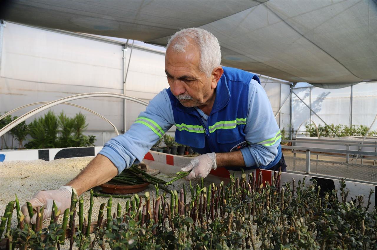 Fidanlık alanında kurulu modern seralarda özellikle gül ve şeflera türlerinde çelikle çoğaltma çalışmaları aralıksız sürdürülüyor. Belediyeye ait mevcut anaç bitkilerden alınan sağlıklı çelikler, üretim sürecinin ilk aşaması olarak seralara taşınıyor. Burada bitkilerin köklenme başarısını artırmak amacıyla sıcaklık, nem ve ışık dengesi kontrol altında tutulan özel üretim alanları oluşturuluyor.