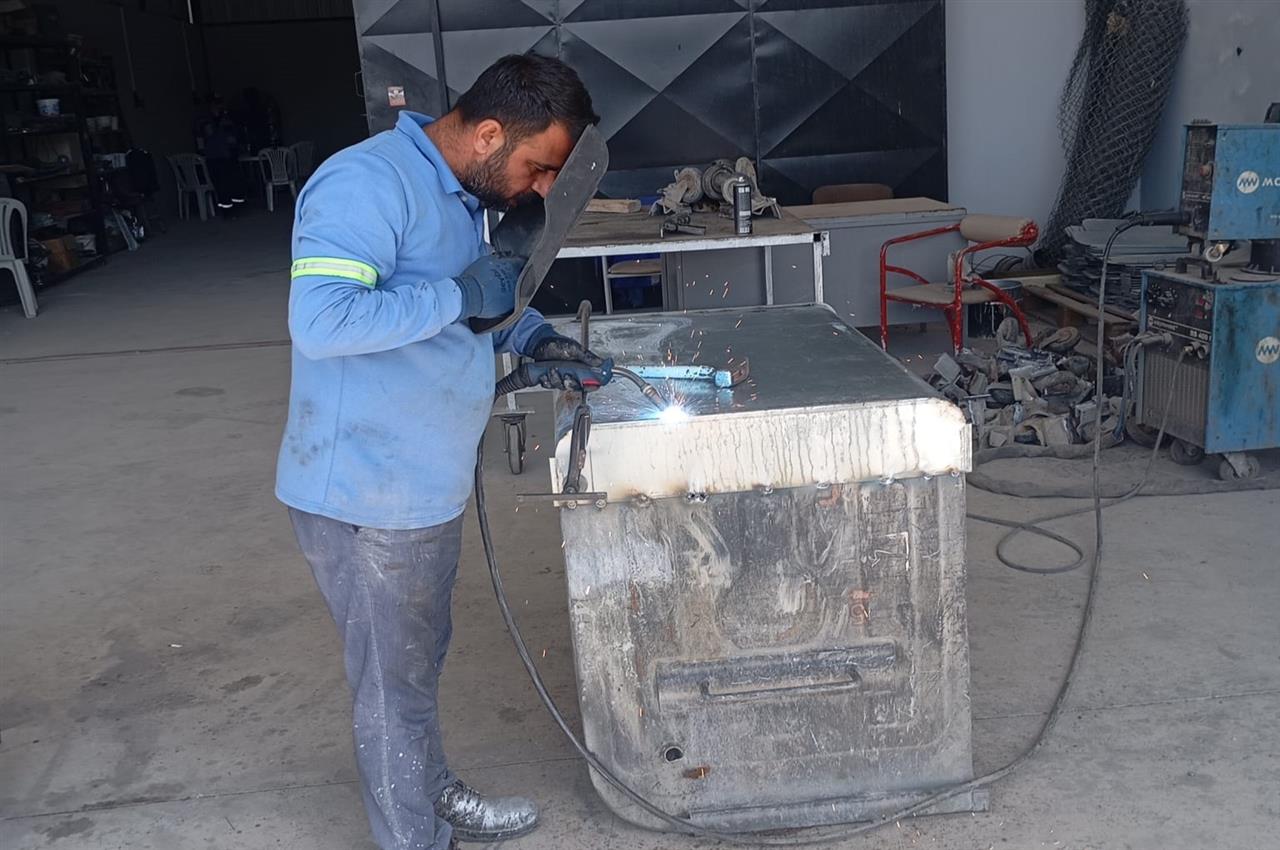 Akdeniz Belediyesi Fen İşleri Müdürlüğü’ne bağlı yeni teknik birimler sahasında hummalı bir çalışma yürüten ekipler, belediyeye ait her türlü iş makinesinin yanı sıra, çeşitli araç ve gereç ve mobilya ürünlerinin üretim, tamir, bakım ve onarımını da gerçekleştiriyor.